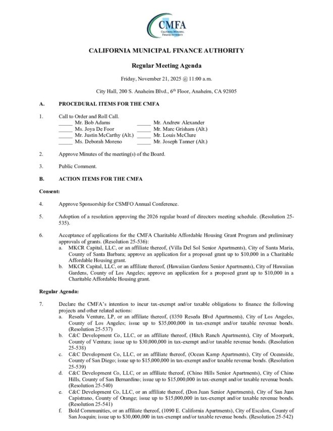 1 CMFA Agenda – 11 21 25